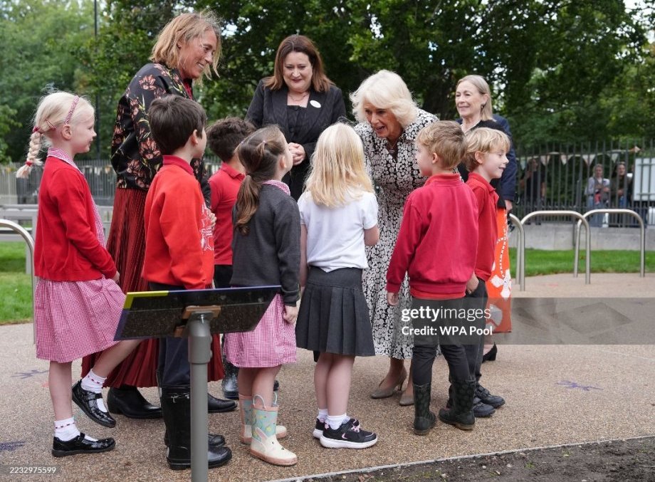 Принцът и принцесата на Уелс по време на посещението си в обновените градини на Природонаучния музей в Лондон и среща с деца и младежи, участващи в образователни програми, които ги свързват с природата и насърчават биоразнообразието в градските райони.