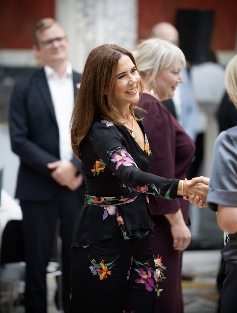 Костюмът на Мери й стои добре, панталонът е с правилната дължина, но десенът разваля цялото впечатление, прекалено едри фигури и е някак старомодно-домашен. С колан в лилаво например или горчица би могло да изглежда малко по-актуално и представително.