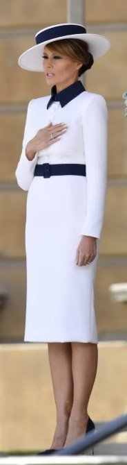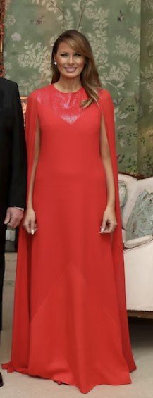 Костюмът на Мелания в актуалния цвят, не мога да реша харесва ли ми, но й стои чудесно.