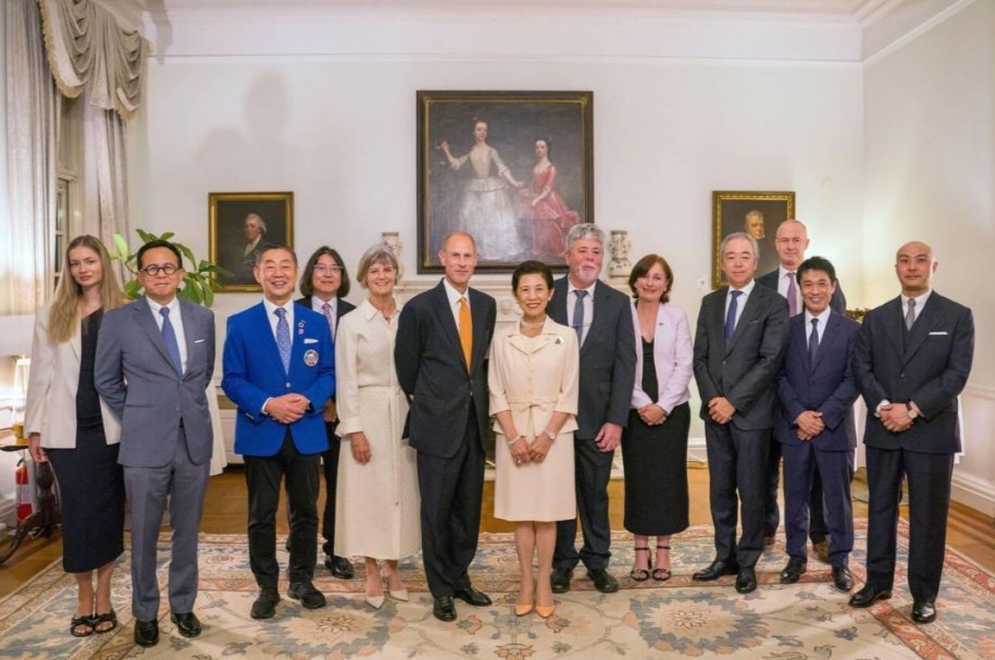 Херцогът на Единбург с принцеса Такамадо по време на прием в резиденцията на британския посланик в Токио, за да се повиши осведомеността за проекта „Марион без мишки“ на Birdlife International, чийто патрон е принц Едуард. Мишки, случайно внесени на остров Марион в началото на 19 век, са опустошили екологията на острова. Без намеса те биха могли да причинят локално изчезване на 19 от 29-те вида птици в рамките на 30 години. Проектът има за цел да премахне тези мишки, за да защити морските птици и местните видове на остров Марион в Южна Африка.