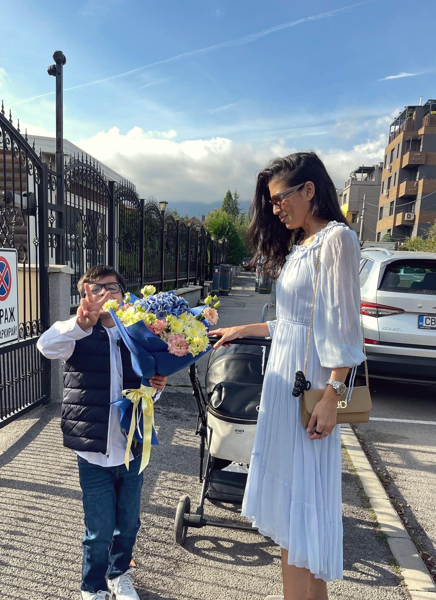Андрей и Емануела също са имали първокласник. Емануела тук ми харесва, не знам дали е от дрехите, но по-добре изглежда.