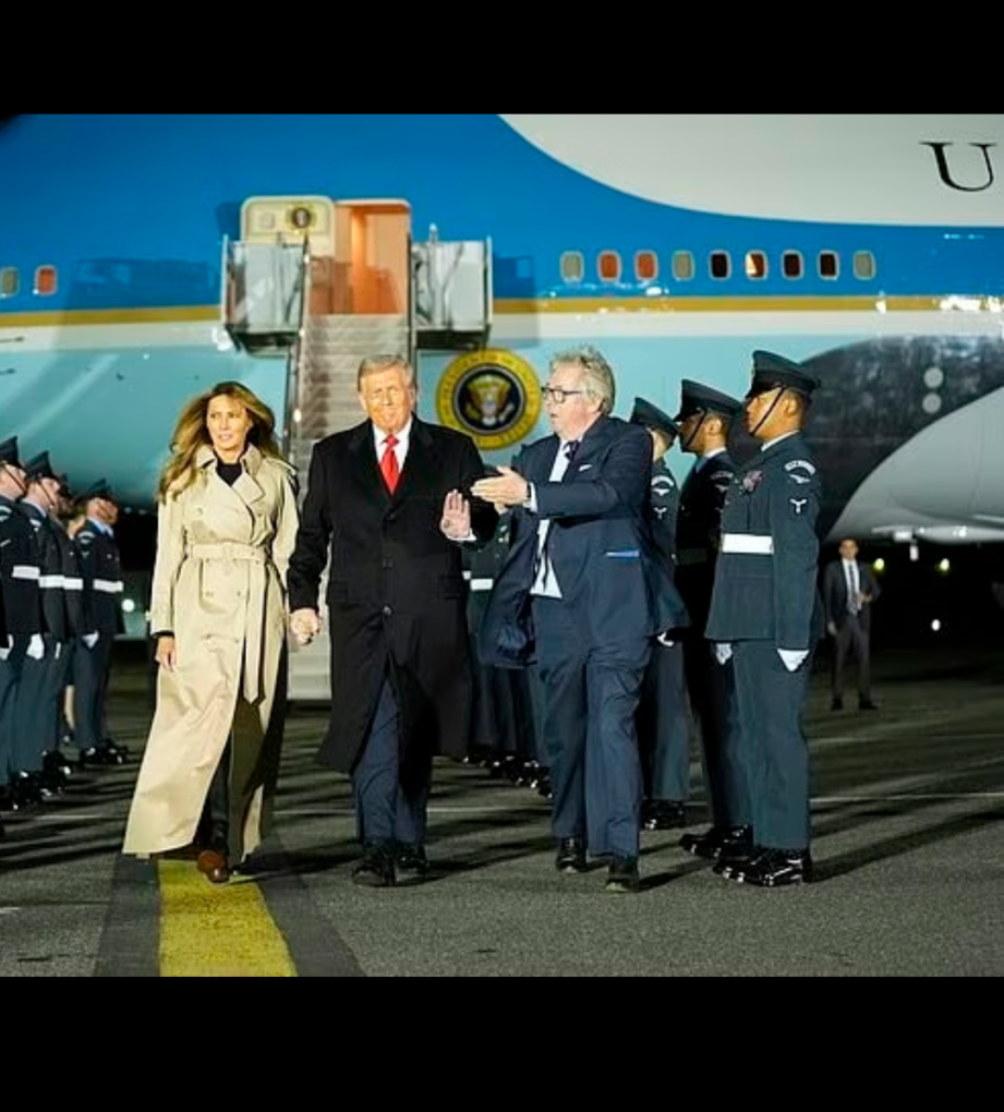 Доналд и Мелания в UK. Ще се видят по късно с Кейт и Уилям. Не мога да разбера отсега ли е снимката, тя е с Бърбъри тренч. Предния месец той беше в Шотландия без нея