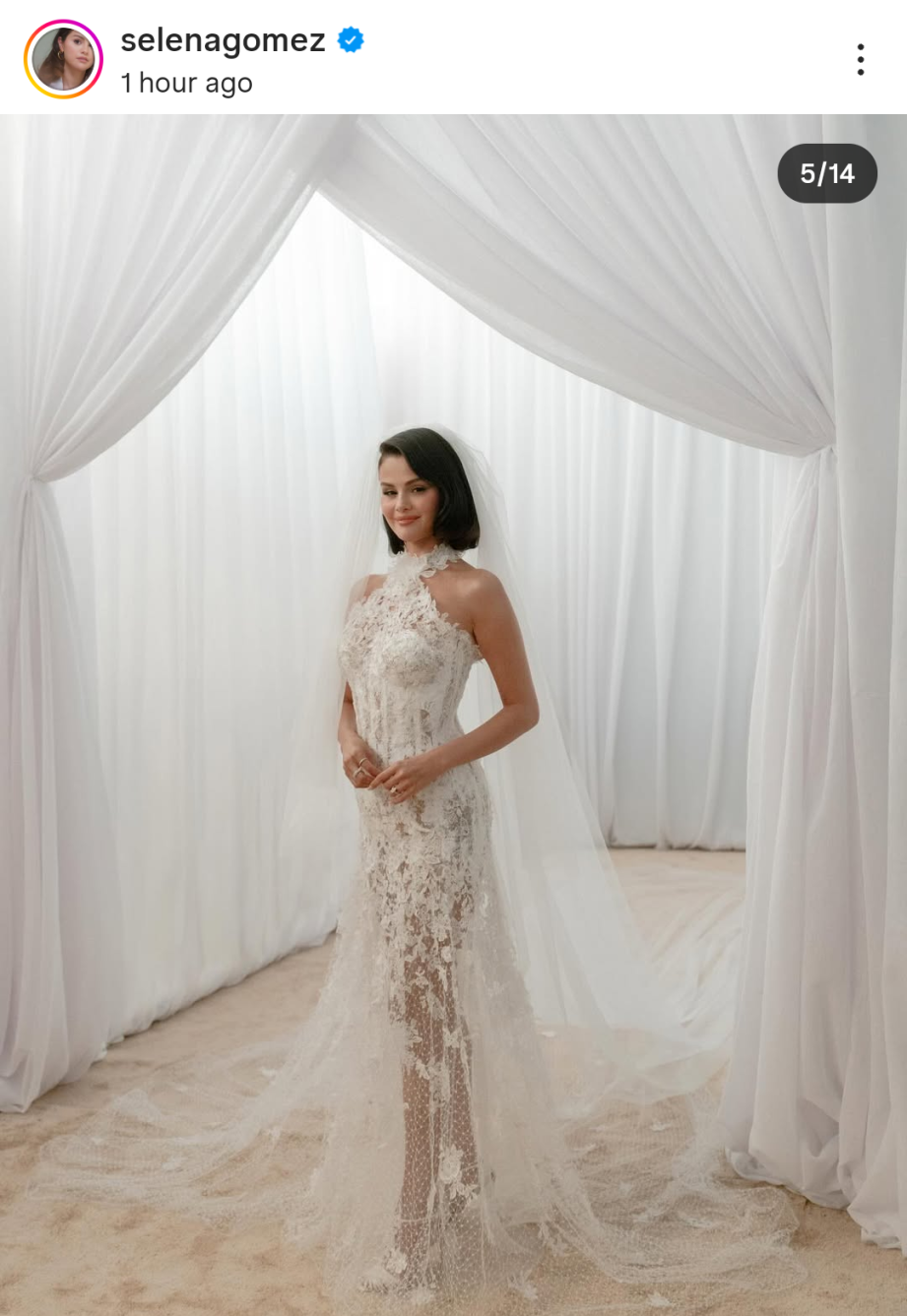 Селена Гомез е споделила още снимки от сватбата. Едната рокля почти като на Мария 😅