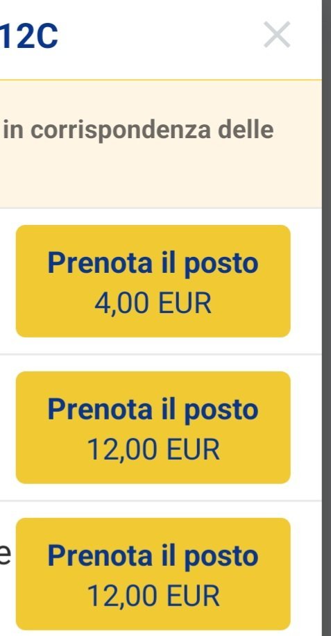Ако изберете място в тези редици ще ви покаже, че за единият възрастен и детето е включено ( в случая compreso), а за другият възрастен съответната цена на мястото, което не сте задължена да избирате и плащате, ако не желаете.