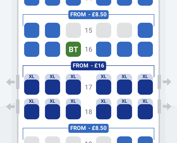 ... Единствено на седящите на авариен изход се дава правото да си качат раницата горе.