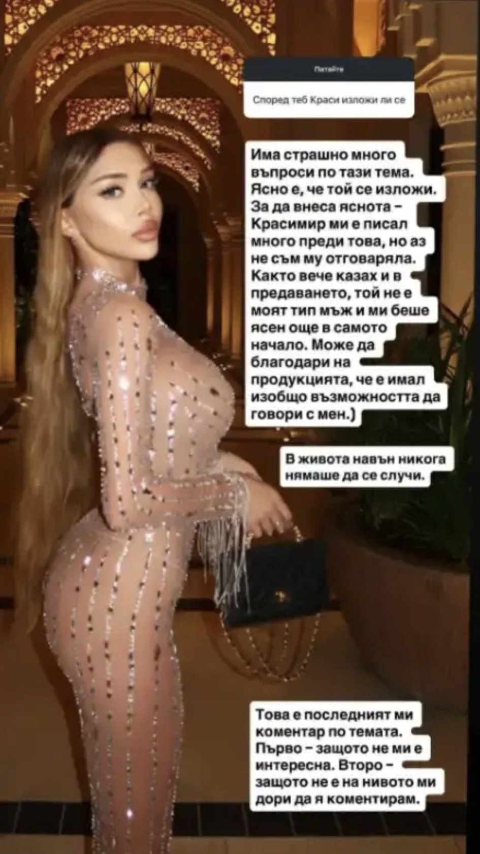 Диа, тези сторита ги беше качила миналата седмица, след като излъчиха “прането”. Имаше и още няколко сторита в същия стил. Няма какво да се преструва - жегнала се е, защото една обикновена мутричка я направи на глупачка в национален ефир, при всичките ѝ претенции.