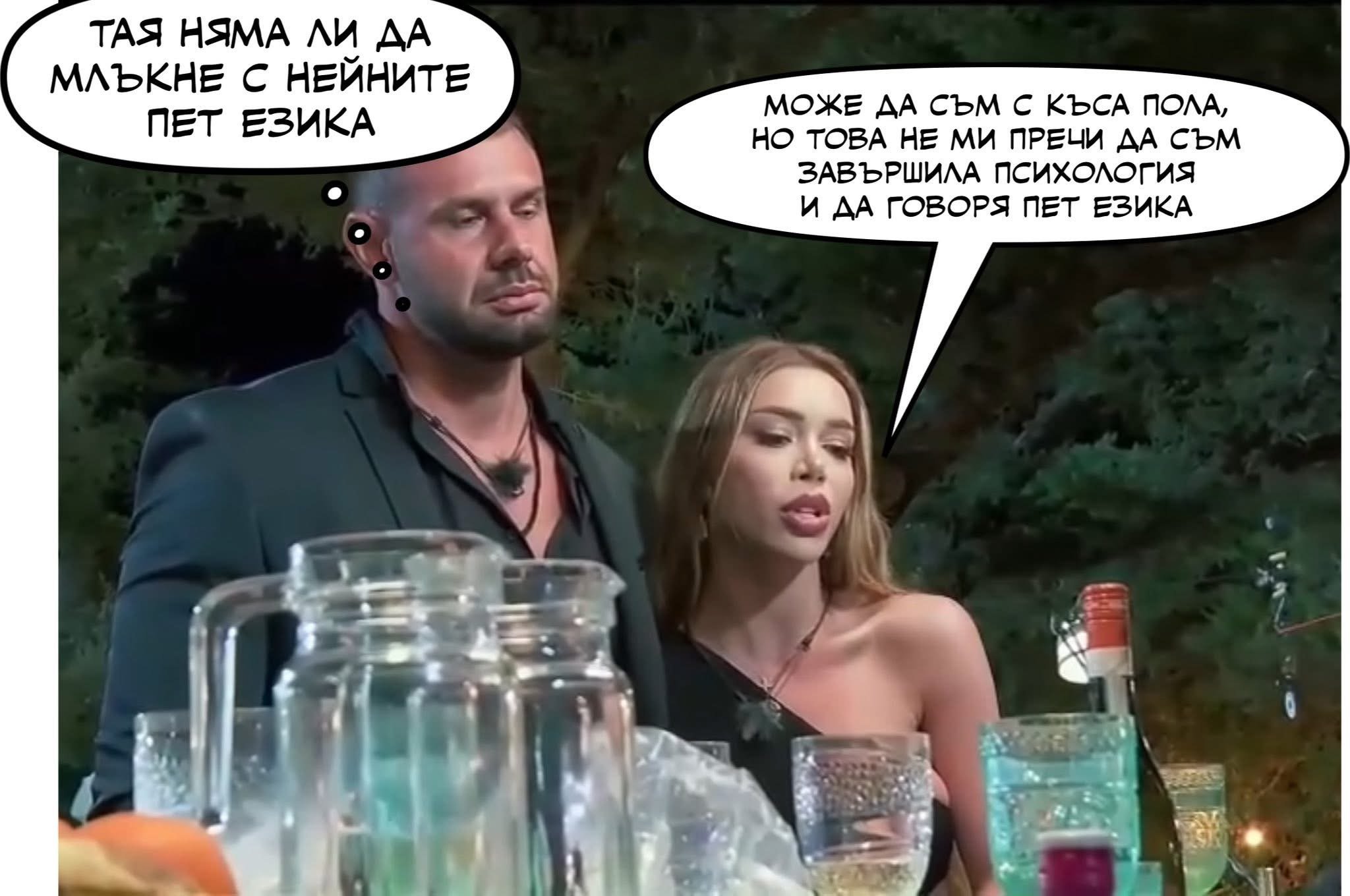 Наистина се изложи много. Страшно токсично отношение има, а тази Габриела какво се хилеше, а аз на нейно място не бих се хилила, а бих бягала с двеста. Познават се от няколко дни, а той се държи така? Ами ако са гаджета от повече време и някой я заговори, може и да е със счупен нос и да реве по Пирогов…