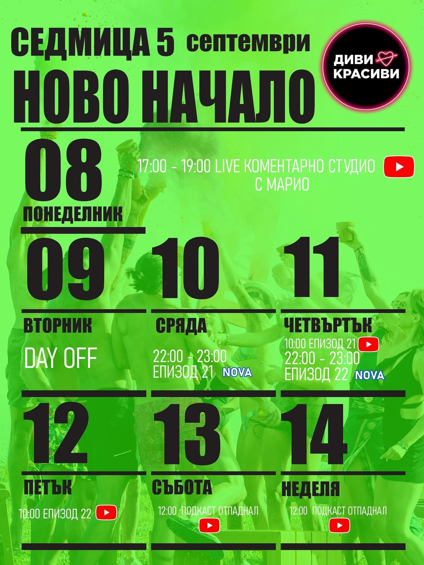Не ми стана ясно от тази таблица, в кои дни ще има епизоди по Нова?