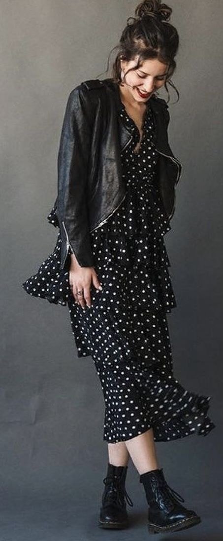 Аз имам подобна и я нося с късо кожено яке /давам идея за връхна дреха/ или само по рокля. Да, с всякакви обувки се комбинира.