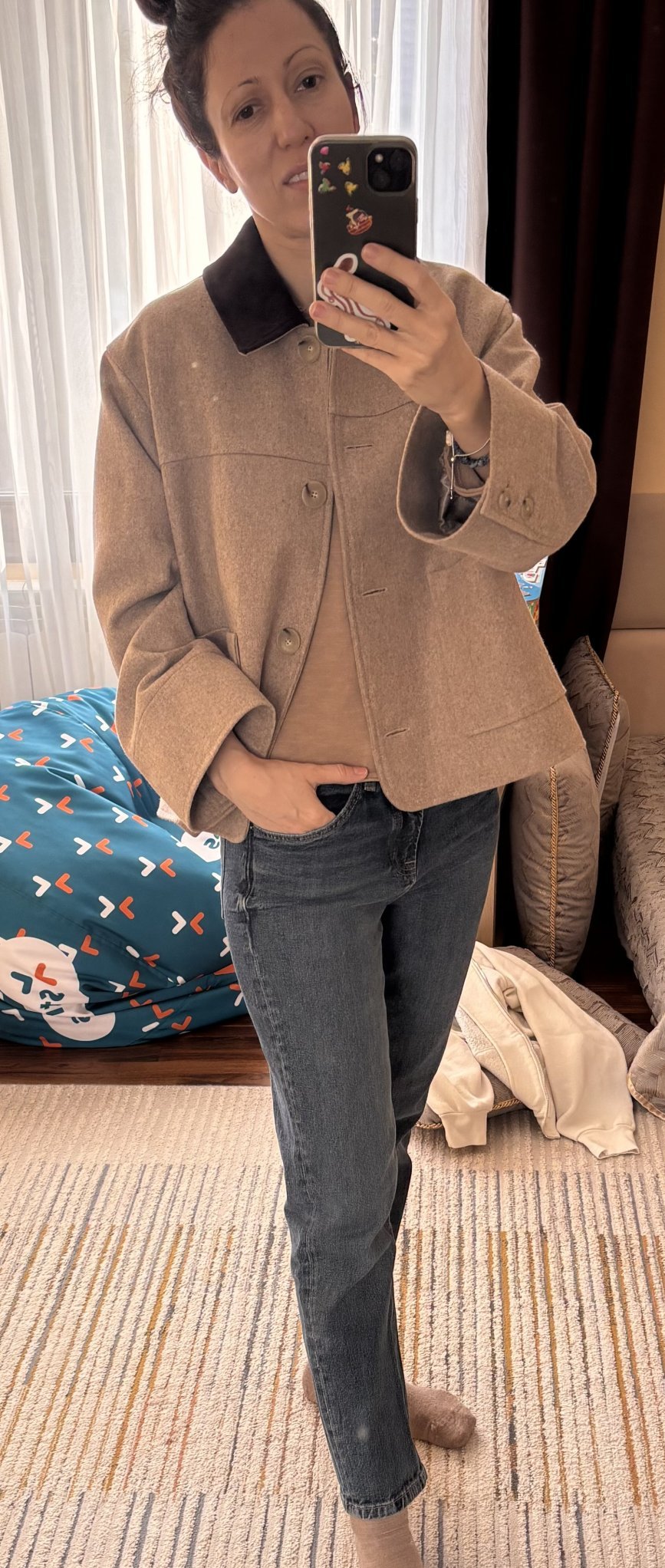 Една малко по-нормална снимка на късото яке от днес, но тези уморени очи..
