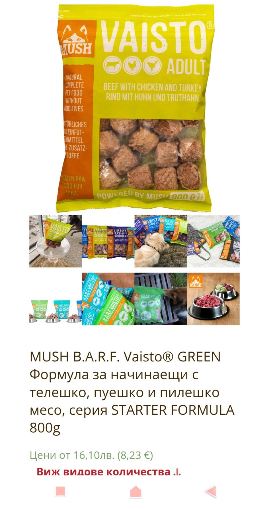 Plamena.. този зеления го дават стартер затова мислех с него да почна. Гледах че са с 3 вида месо, ти само моно ли барф ли й даваш?