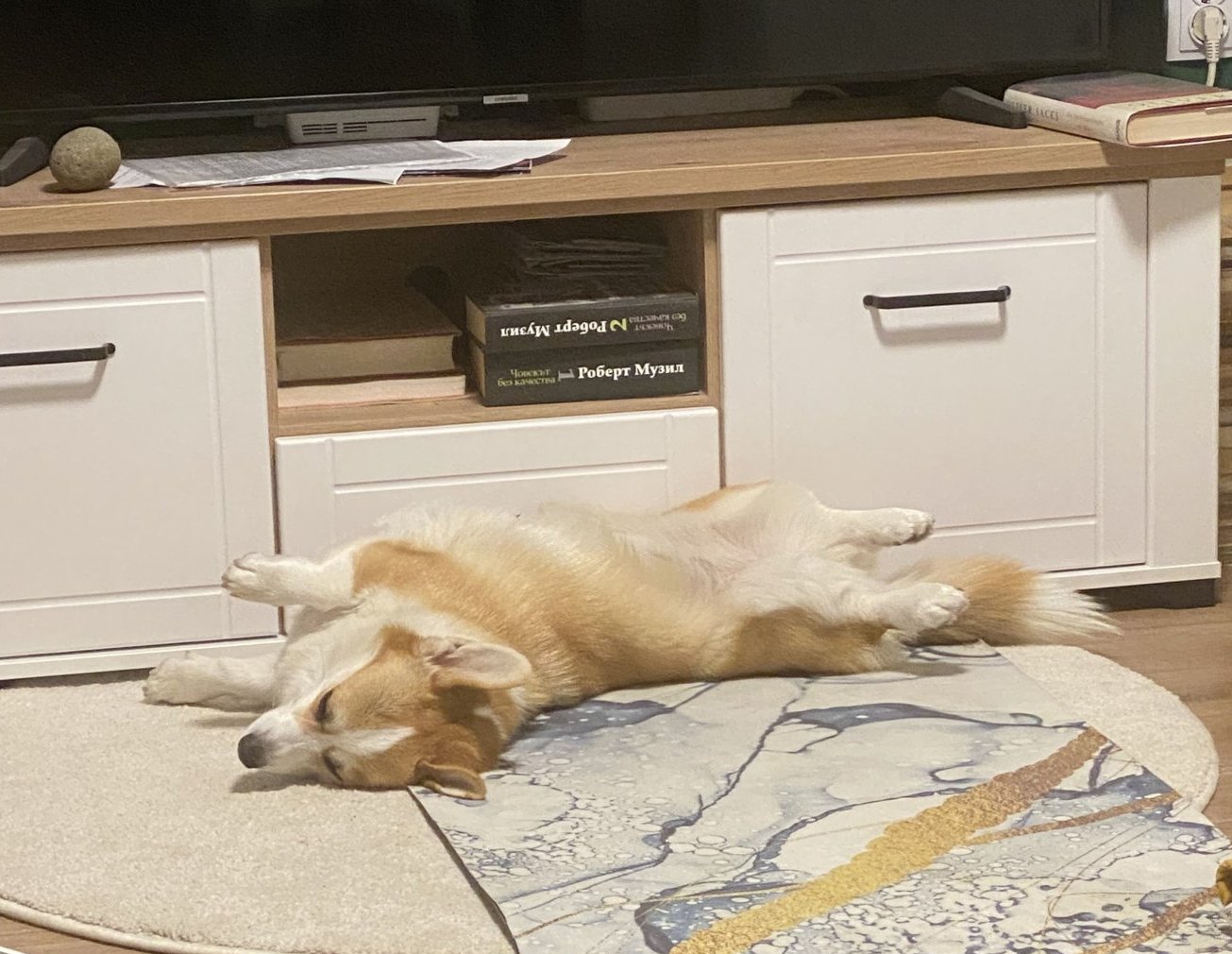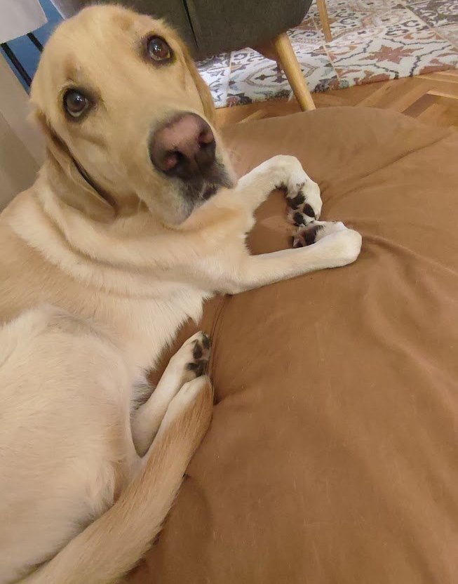 Изи благородно ви завижда на елегантните кръстосани лапи!