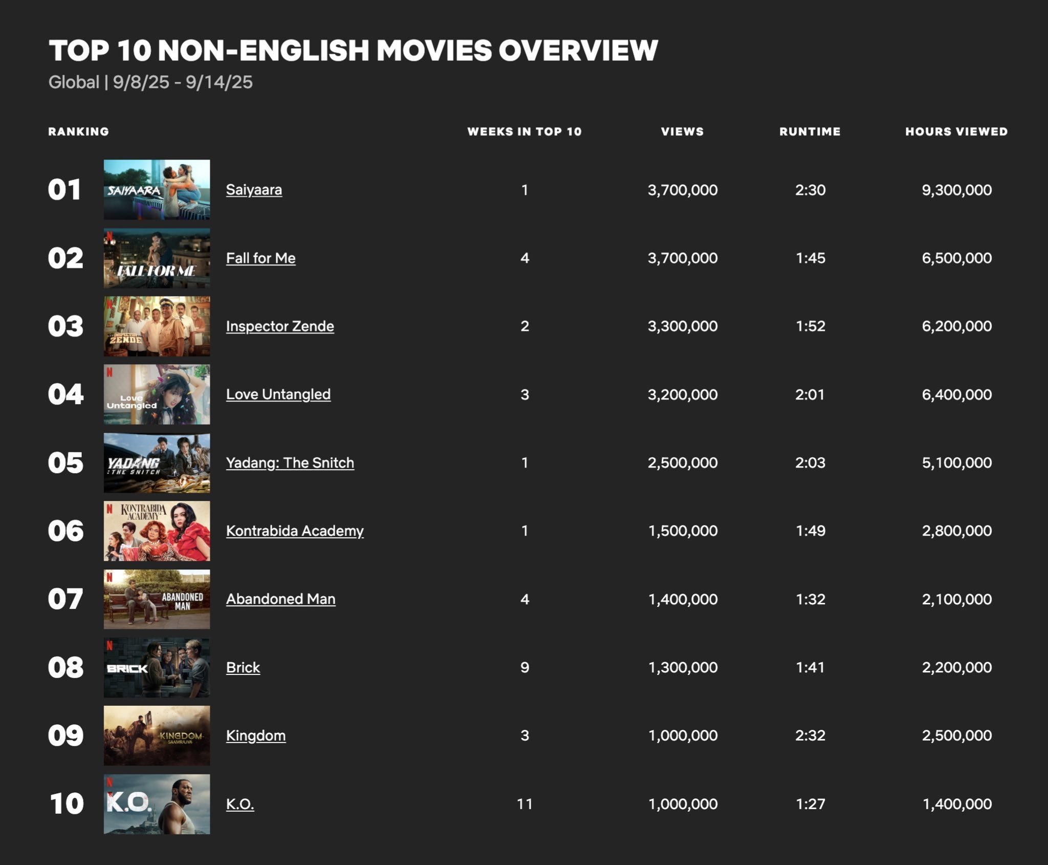 📊 | #MetrukAdam, с участието на #MertRmazanDemir, се класира на 7-мо място в списъка „Netflix - Най-популярни филми, различни от английски“ през четвъртата си седмица с 1 400 000 гледания и 2 100 000 часа гледане! 🚀