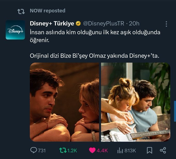Телевизионният канал Now публикува отново туита на Disney за сериала ни „Нищо не ни се случва“ в официалния си акаунт в Twitter