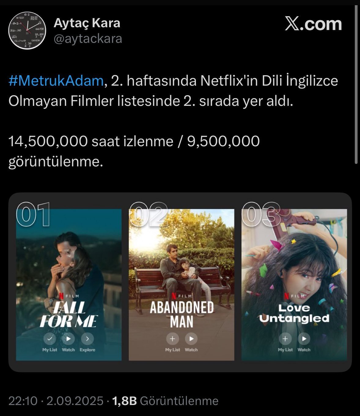 С участието на Мерт Рамазан Демир и режисиран от Чааръ Вила Лостували, „Изоставеният човек“ остава в Топ 10 на Netflix за втора седмица.
