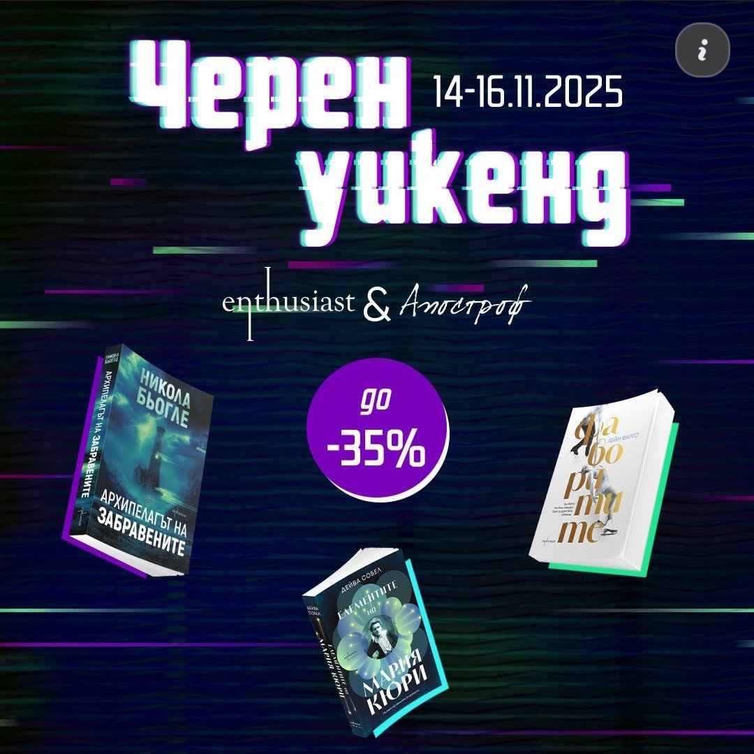 Днес мисля да отскоча до книжарницата на "Колибри". Там има -35% на всички техни книги, а не до -35%  Wink