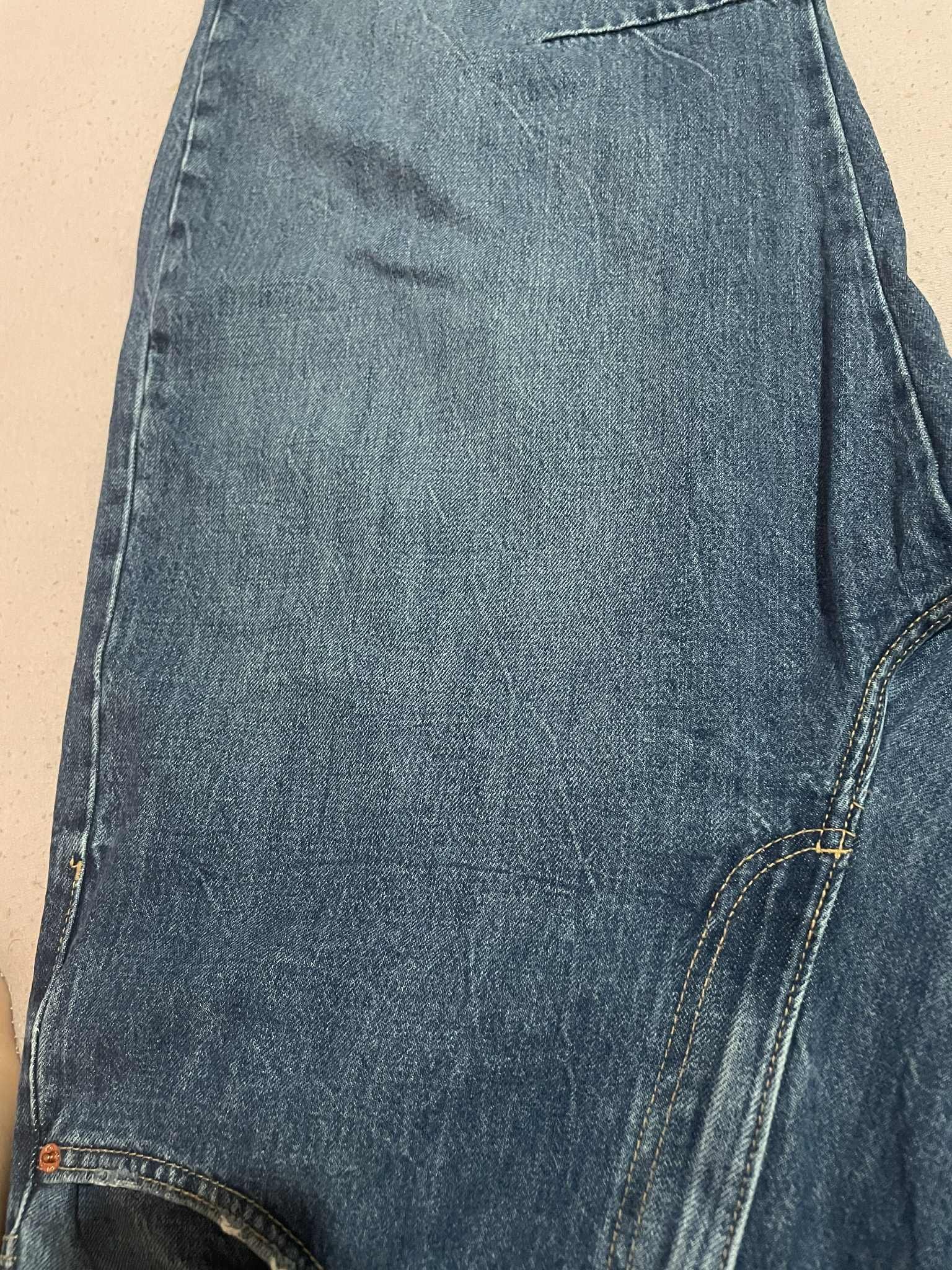 Прикачвам снимка на прани веднъж дънки, които се обезцветиха и изглеждат износени.