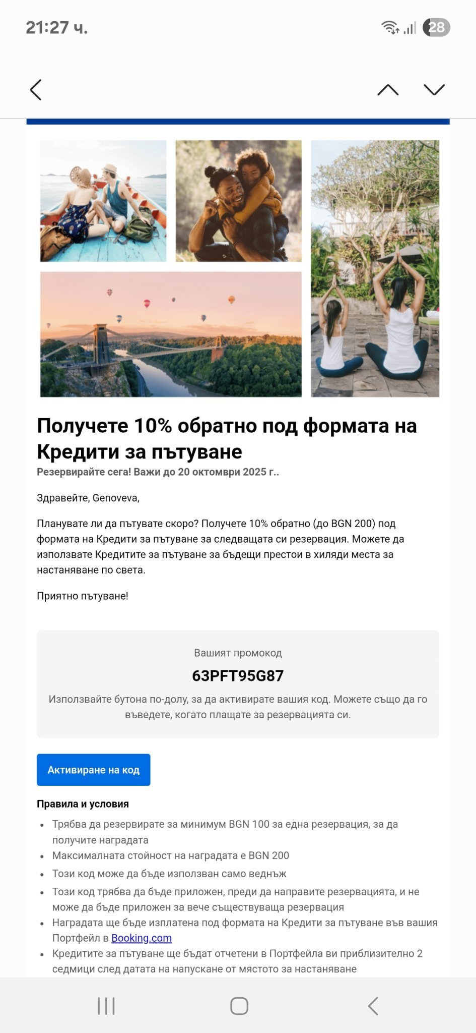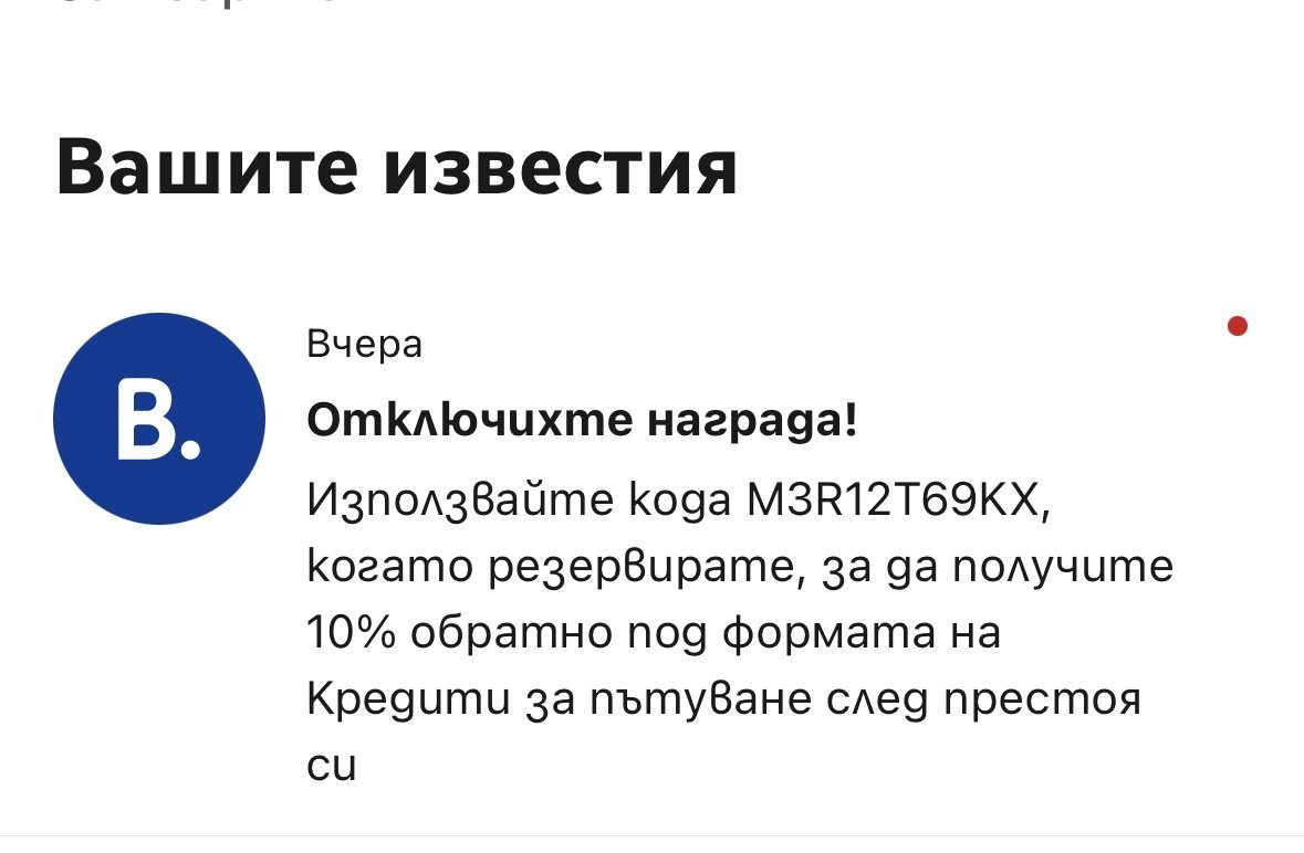 Код за букинг, валиден до днес:
