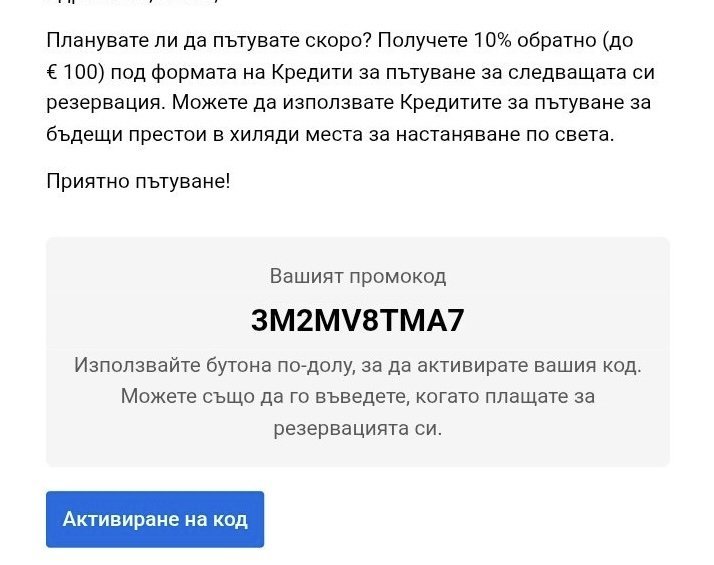 Давам код за Букинг, пишете на лично