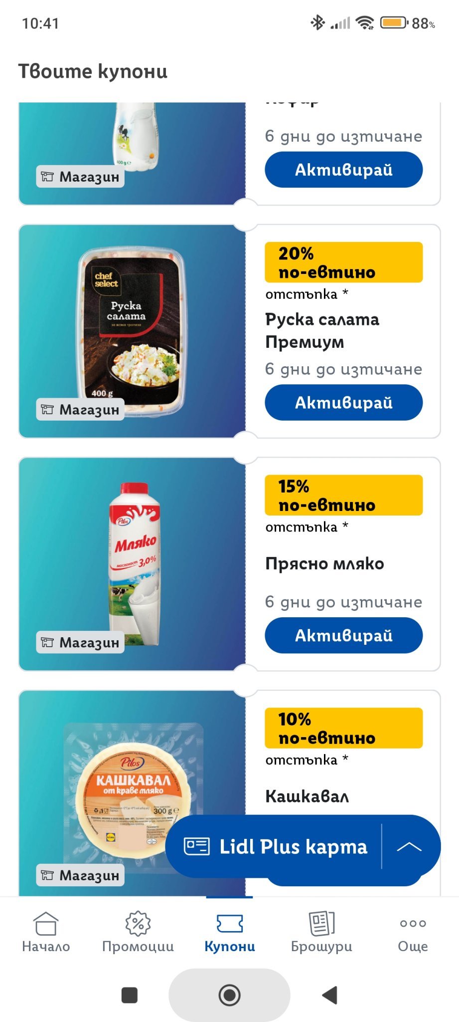 Ако някой има нужда от купони за лидл, да пише - имам за айрян, верея прясно, салата трикольор, закуска пица , гланц съдомиялна, пилешки пастет