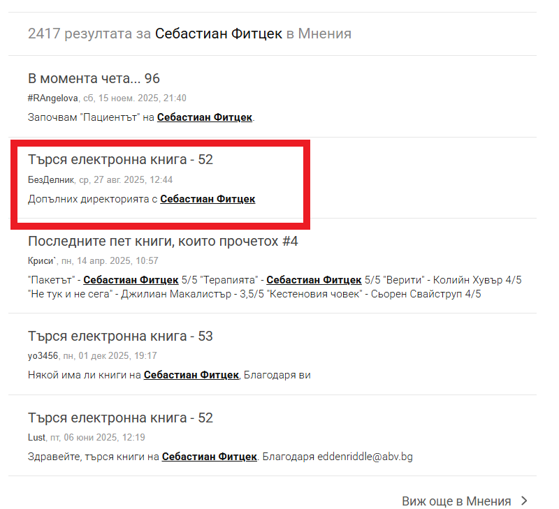 Някой има ли книги на Себастиан Фитцек, Благодаря ви😊