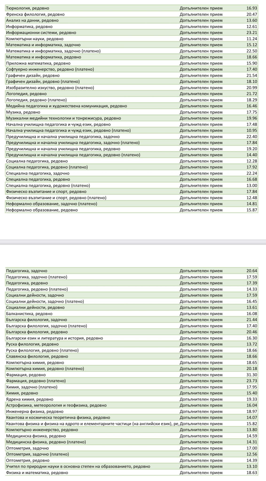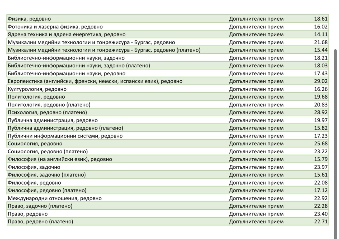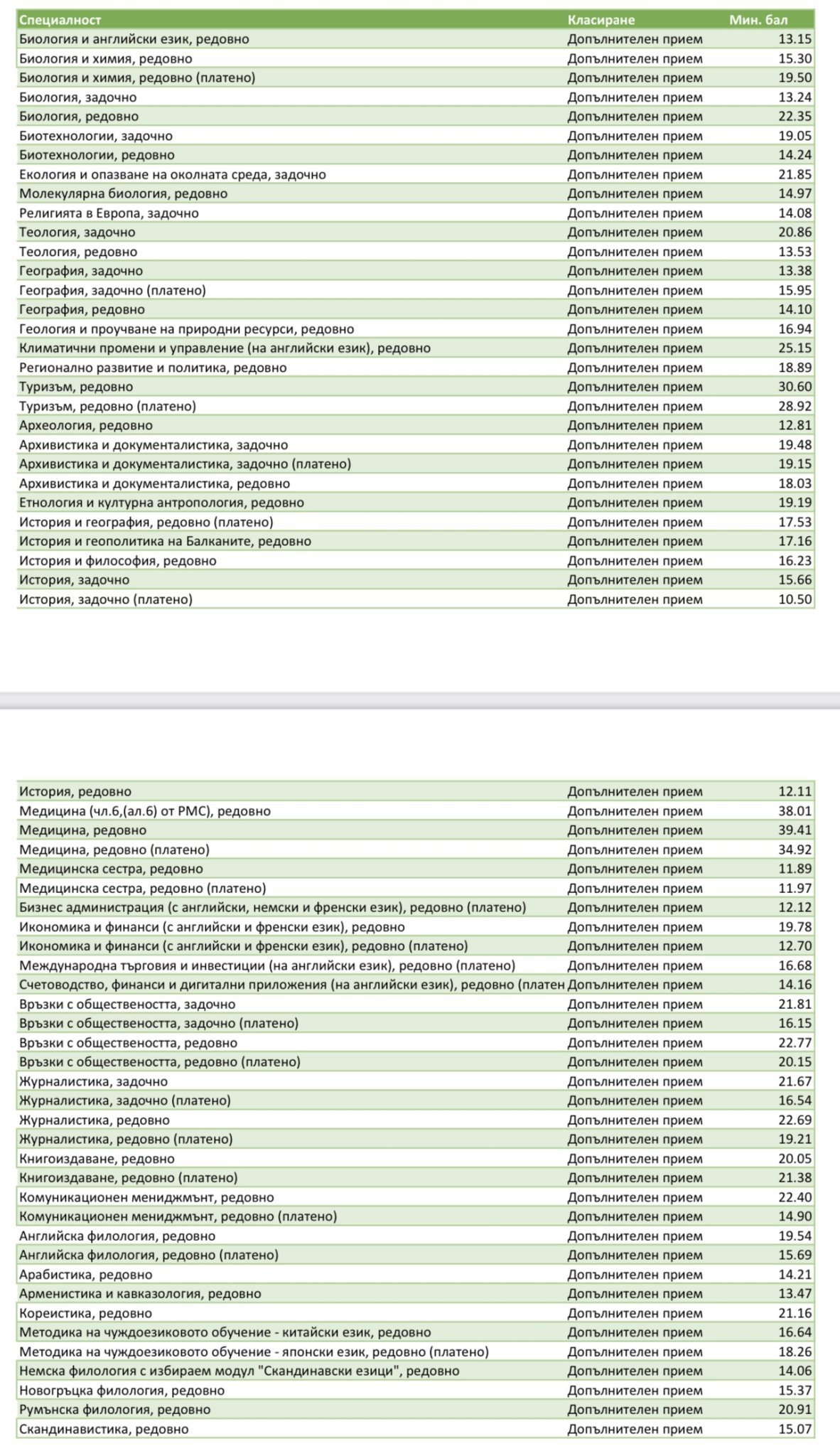 СУ са публикували минималните балове от допълнителния прием (което много ме учуди, защото в последните години не се публикува публично тази информация, освен ако не се подаде заявление по ЗДОИ).