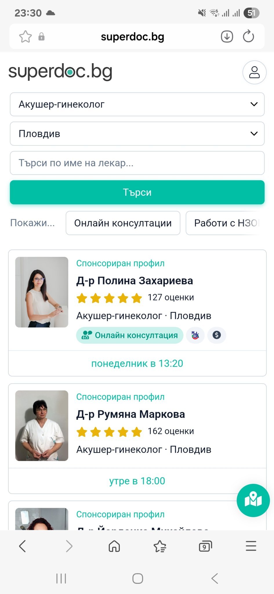 Ако не си намерила още доктор, разгледай в superdoc - избираш специалност "Акушер-гинеколог", град Пловдив и даваш системата да търси. Виж колко много има.