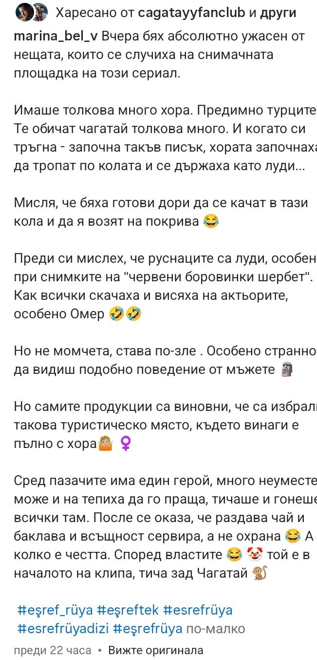 Поствам ви една рускиня живееща в Турция, която е шокирана от фурора който предизвиква Чаатай дори в мъжете... 🤭