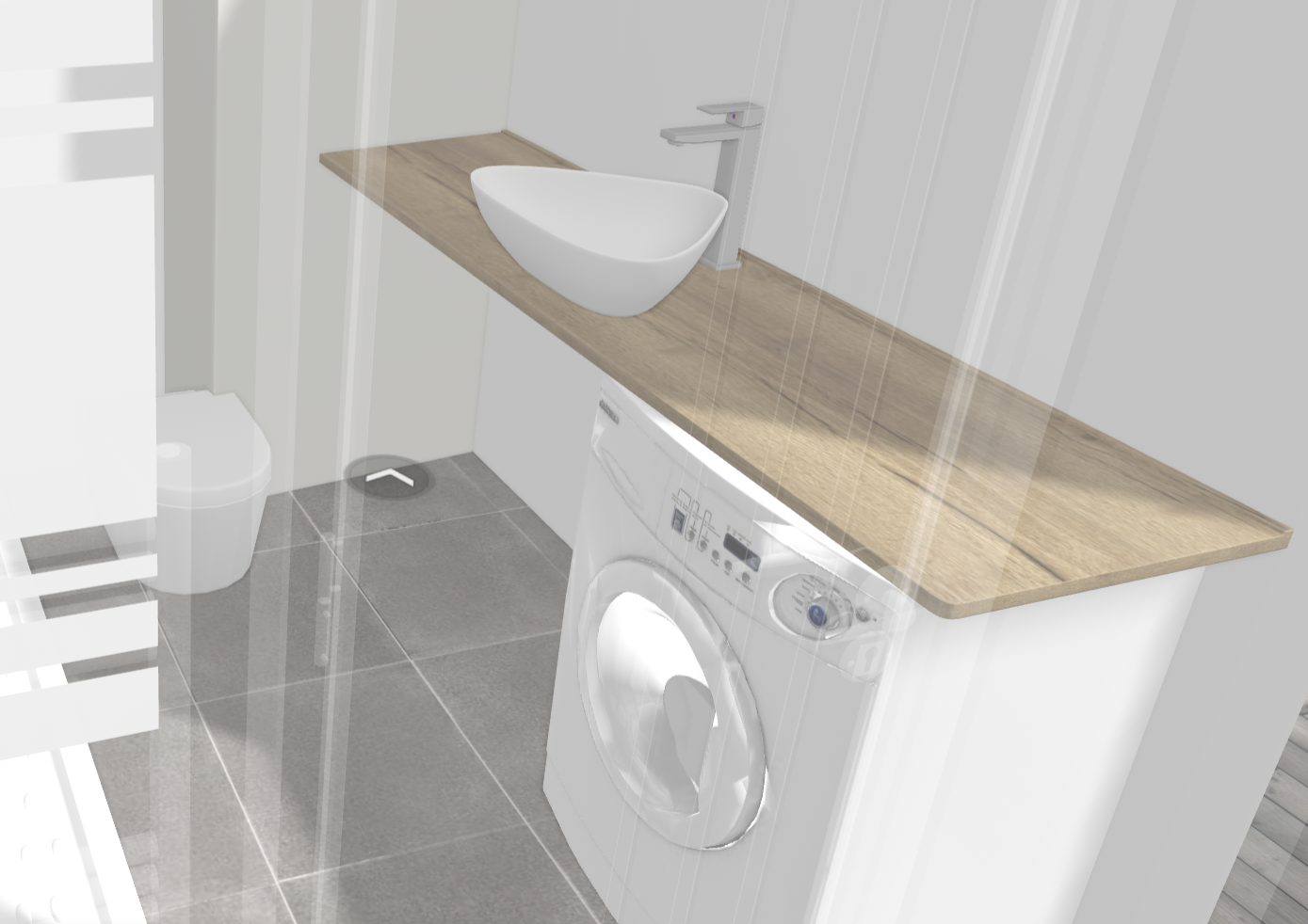 Моята идея е да вкарам пералня под плота на мивката ето така: