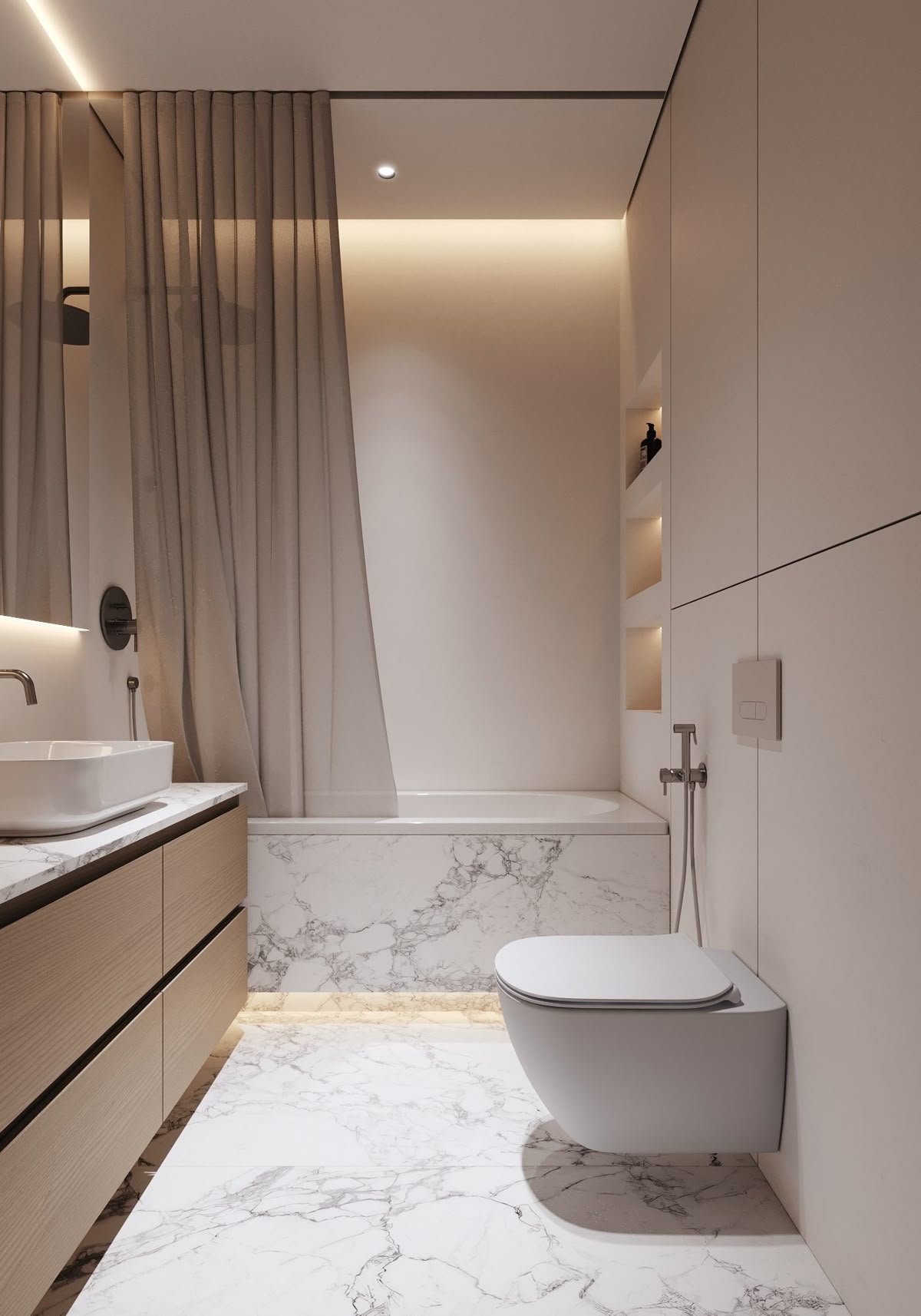 Иначе нишата в тавана е супер правилен и естетически издържан начин за поставяне на завеса в банята. Но предвид общата ни изостаналост понякога по отношение на интериорни решения от години при нас си върви стъклото и плочкаджиите таман са го свикнали. Ако сега речеш да им развалиш рахата с ниши в тавана ще има дълго да те гледат като големи камъни. Grin