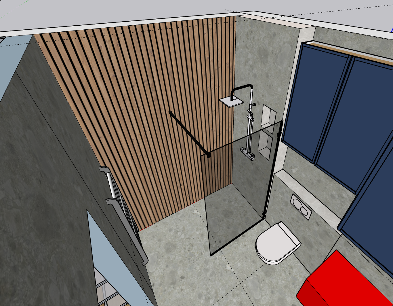Като направим една от стените в душ зоната (или всичките) с ето тази дървесна плочка, че иначе много сиво става: