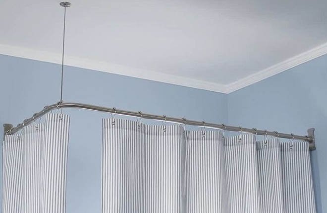 Заоблен или ъглов се захваща по средата с нещо като синджир от тавана. Изглежда зле и пречи на придвижването на халките. Поне аз съм виждала само такъв вариант.