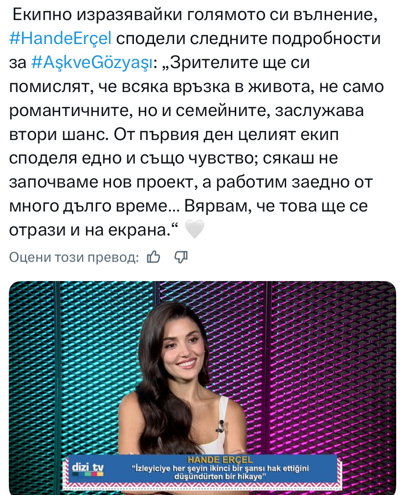 Ханде Ерчел говори за новата си роля, Мейра, в „Любов и сълзи“