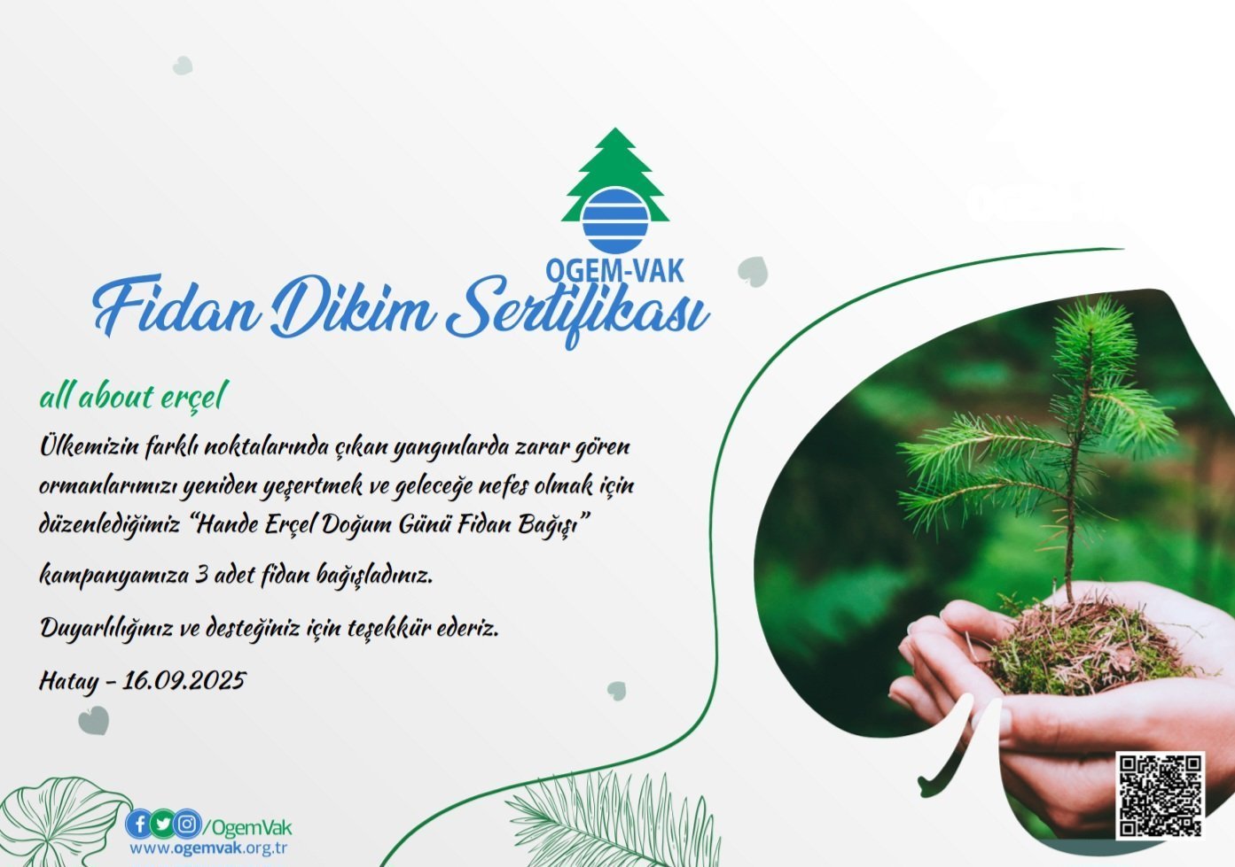 Както знаете, всяка година на 24 ноември, по повод рождения ден на Ханде, заедно постигаме много прекрасни неща. Тази година решихме голямото ни дарение да бъде за фондация OGEM-VAK (Фондация за развитие на горското стопанство и подкрепа на услугите за борба с горските пожари), с надеждата да възстановим изгубените ни гори. Създадохме кампания, чийто линк ще намерите по-долу: