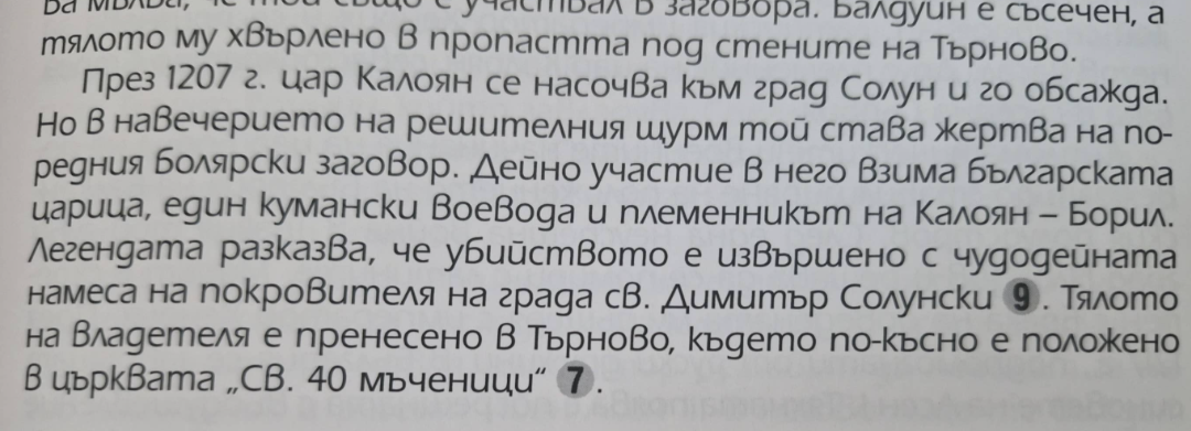 През 1207г. цар Калоян обсажда град Солун. Там е убит при пореден болярски заговор.