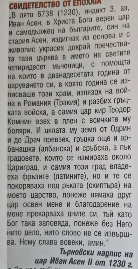 1230 г. Иван Асен II - "Издигнах из основи този храм в името на четиридесет мъченици"