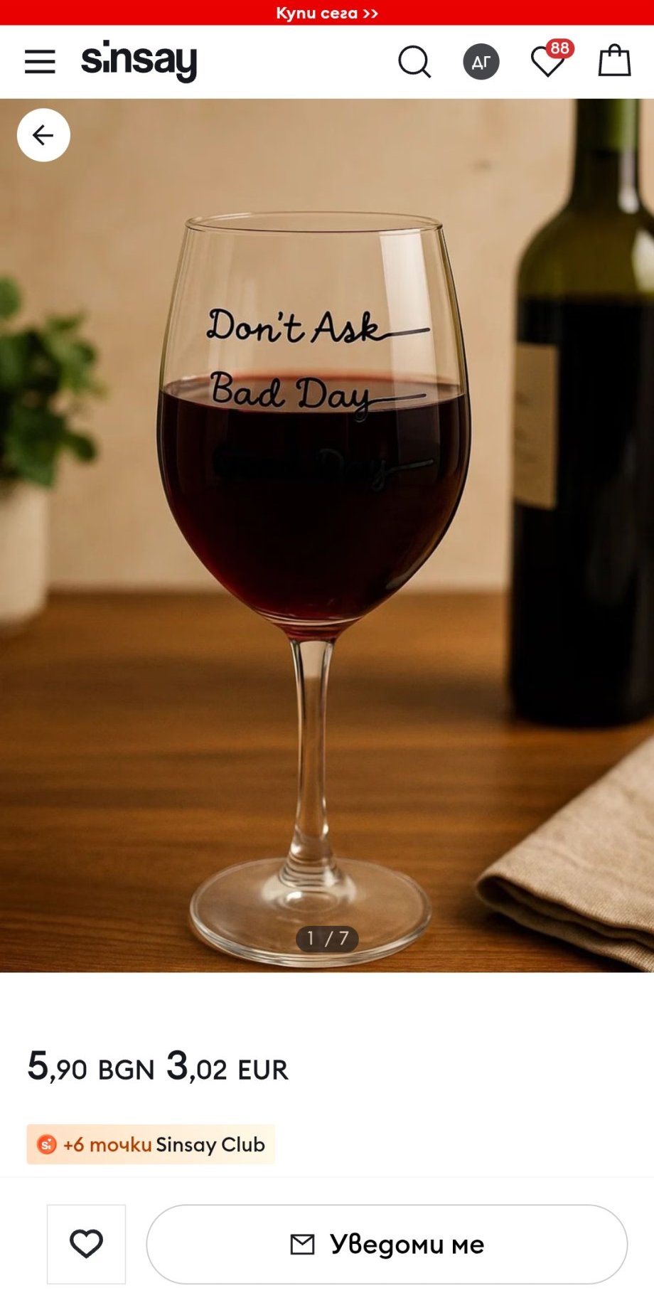Тази чаша дали изобщо я имало? Преди време я видях в "очаквайте скоро" , дебнах я уж, така и не видях да я има за продажба, пък сега изчерпана.