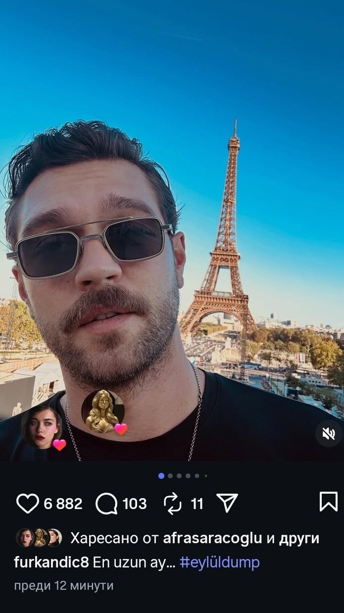 2. Мерт и непознато момиче, с което явно е в отоншения, съдейки по позицицията на телата им, се появяват на снимка. Мерт и предполагам същото момиче, отново демонстриращи интимност, ги виждаме в кратко клипче, заляло всички социални мрежи. До тук всичко е чудесно. Младата звезда на турското дизи е срещнал любовта. Какво по- хубаво от това да се обичат и да показват тази любов. Проблемът в рая дойде само няколко дни по- късно, когато Мерт застана пред репортерите и на въпроса за дамата му, отрече съществуването й! Той не каза, че е било мимолетно, че нещата не са се развили в желаната посока, че са установили непреодолими различия и т.н. (триковете за оправдаване на раздяла при звездите са много), а отрече всичко, което е съществувало. По- звучен медиен шамар от мъж към жена лично аз не съм виждала. Няма значение коя е жената, дори и платена да е, един мъж е длъжен първо да се погрижи за нейната репутация и тогава да мисли как да спасява своята кожа.