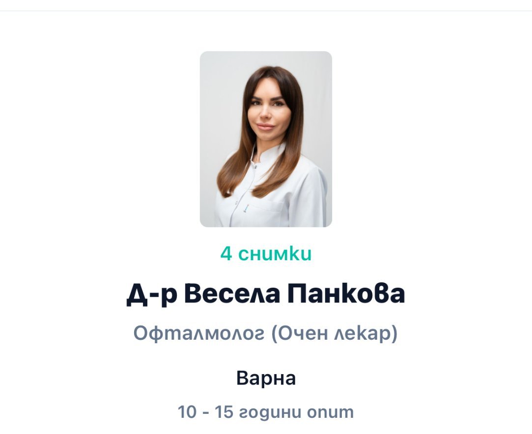 Много благодаря, но няма да я притеснявам за това, попитах само ако знаете евентуално. Направо си записах час през Супердок за петък , че и аз искам да мина на лещи😊 Това е лекарката, нали