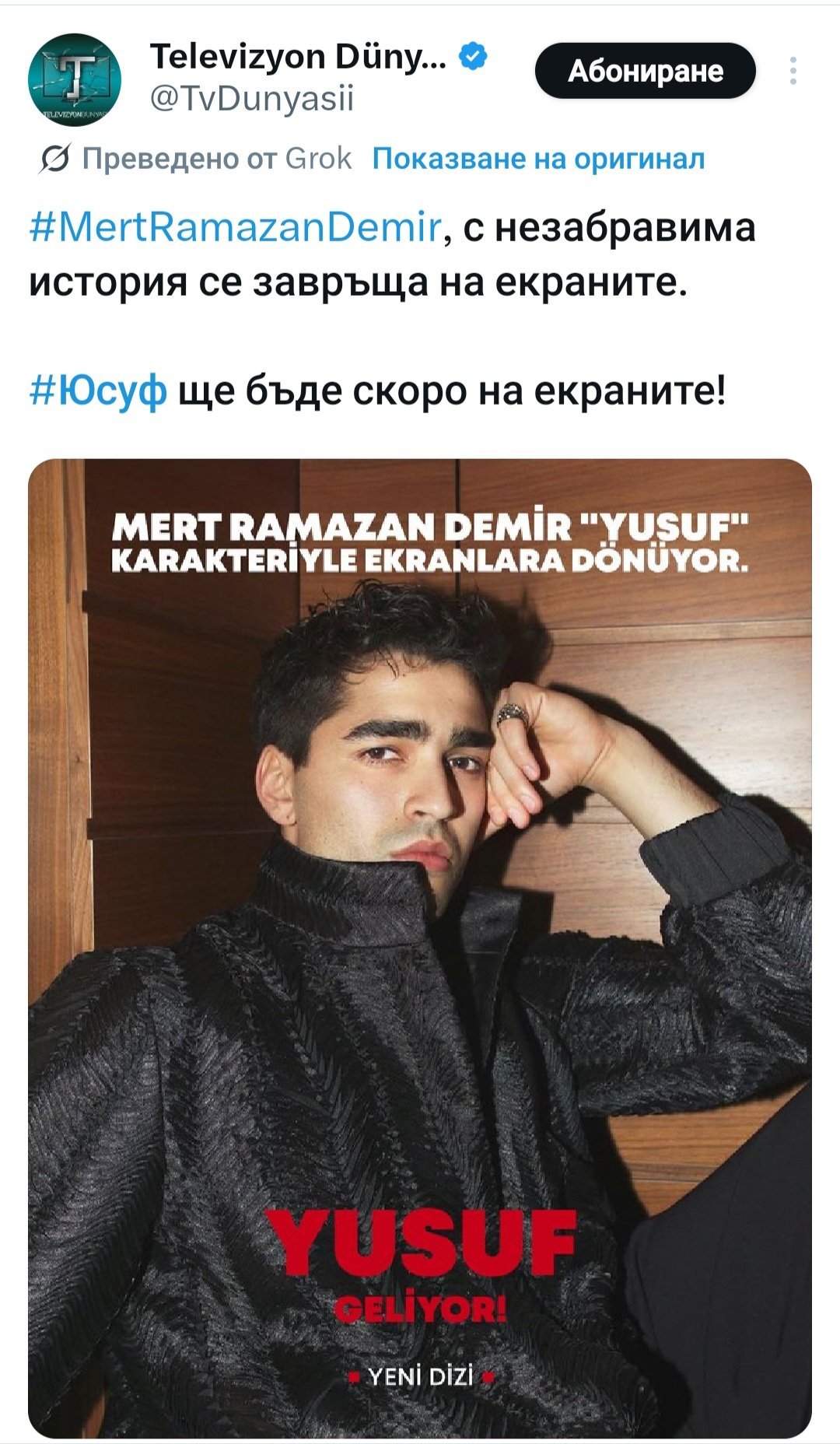 Пост от ОГМ - Мерт се завръща на екран в ролята на Юсуф.