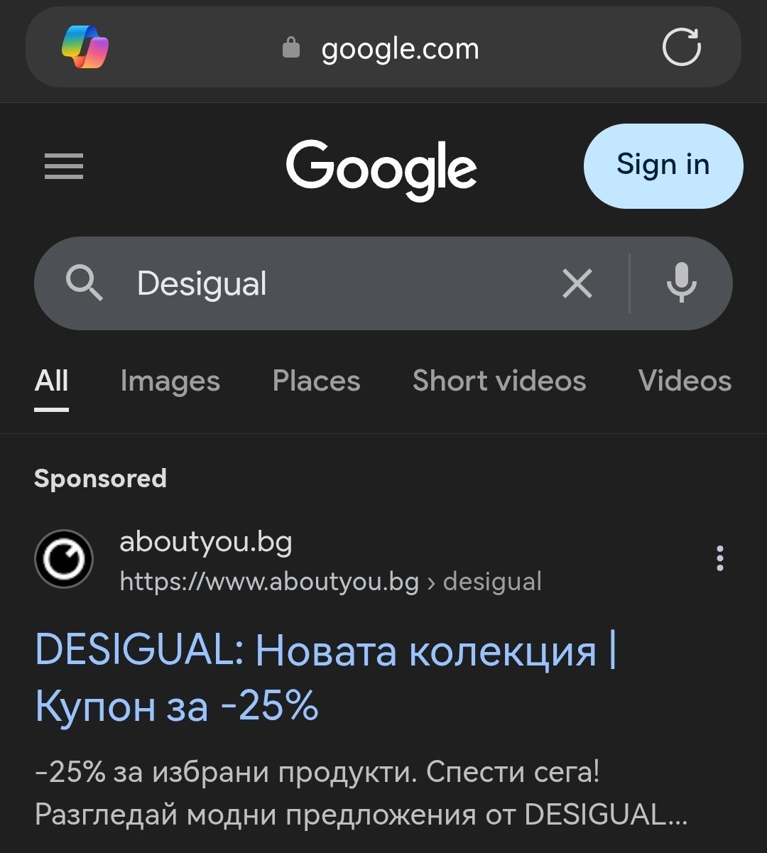 Като напишеш някоя марка в гугъл не ти ли излиза спонсорирана връзка към абаут ю с купон за -25?