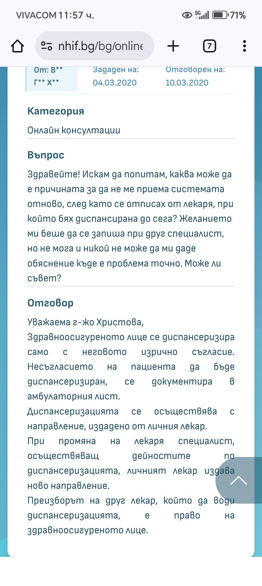 Здравейте! Знаете ли дали и как мога да сменя ендокринолога, при който съм диспансеризирана поради Базедова болест за 10 год.(минали са 5)?