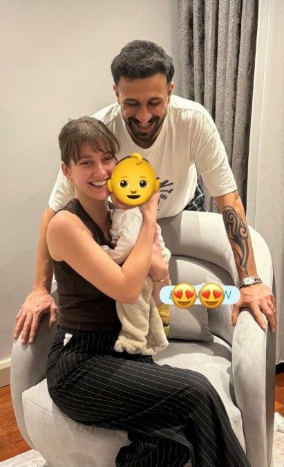 Пускам и още снимки на Берил с бебчето на ръце - тя лично ги пусна в сторито си! Как хубаво го е гушнала и му се радва! Ерсин също се е снимал с други деца и членове на семейството си. Ходили са на пица. Явно Берил и Ерсин са им били на гости тези дни!