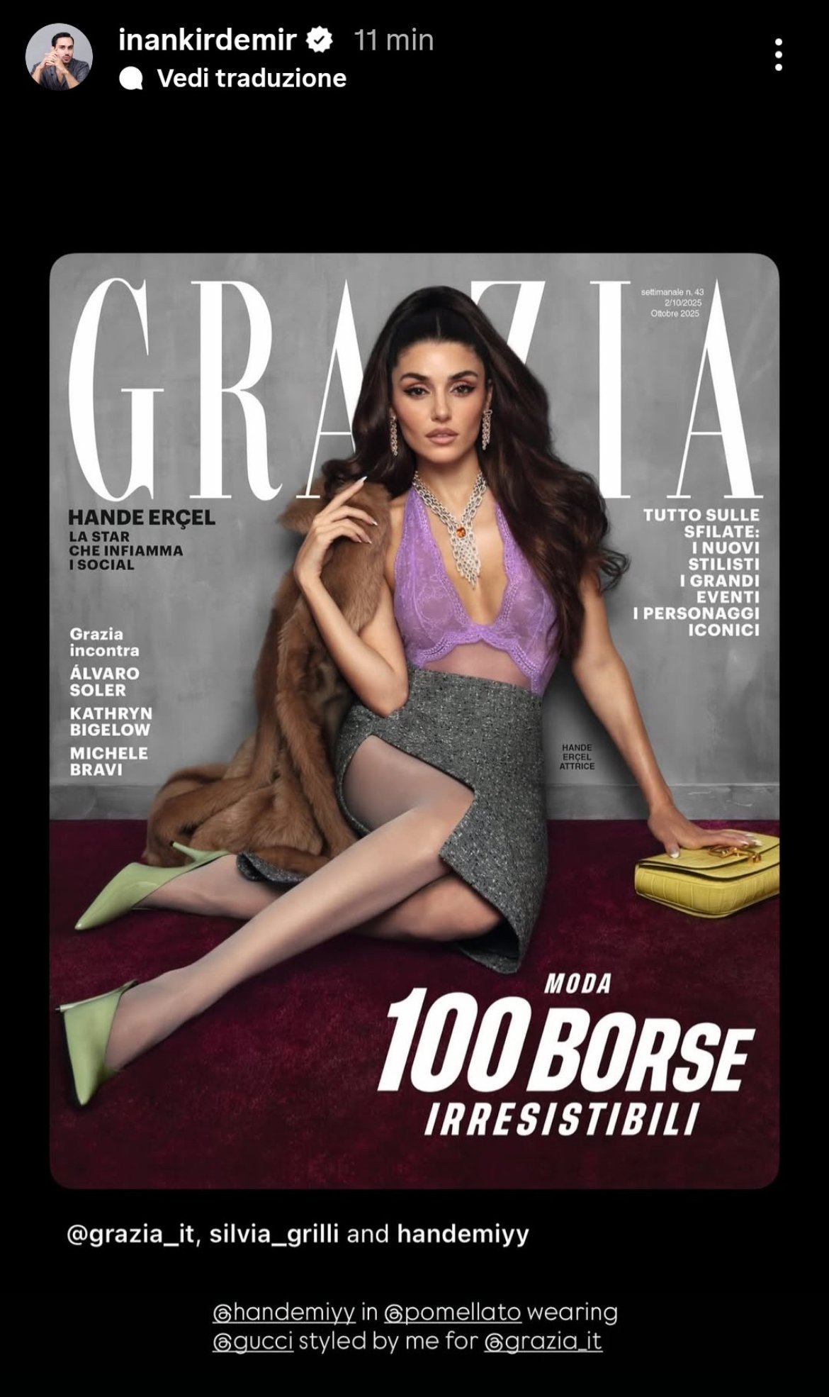 Ханде Ерчел на корицата на списание Grazia Italia.