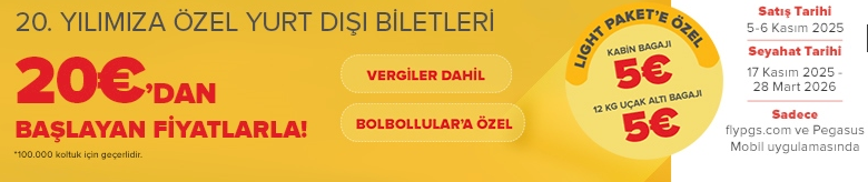 По повод 20 годишнината на ПЕГАСУС: промоция днес и утре за полети между 17 ноември и 28 март на цени до Истанбул от 20 евро. Багаж по 5 евро/посока