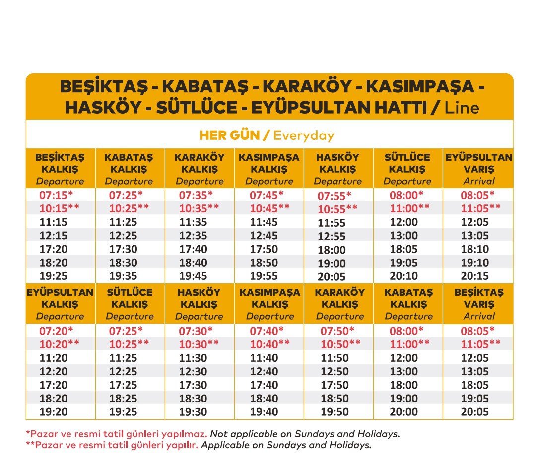 Това на картата не е вярно. Гледайте разписанието, което дамата с дългия ник качи. Корабът на Шехир спира на Каракьой и в двете посоки по линията от/за Еюп.