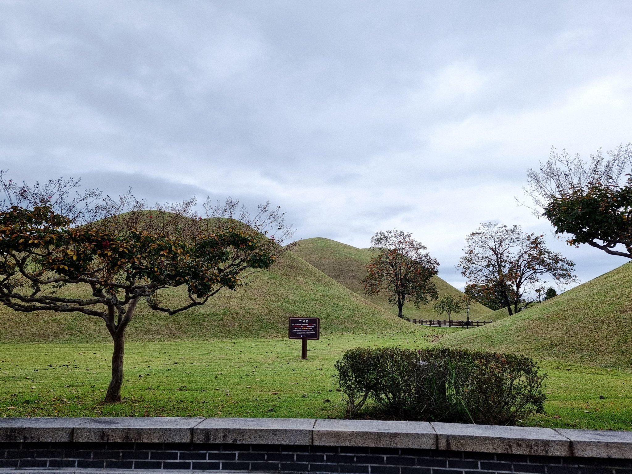 Аз във вторник рано сутринта напуснах Чеджу, летях до Бусан и оттам се отправих към град Гьонджу. Той е бил столицата на кралство Шила (от епохата на Трите Кралства) и е родното място на истинските хуаранги 😁. В него се намират множество кралски гробници, които в момента изглеждат като затревени хълмове, както и първата астрономическа обсерватория в Азия. Освен това, има красива историческа част, един мост и останки от дворец на езеро.
