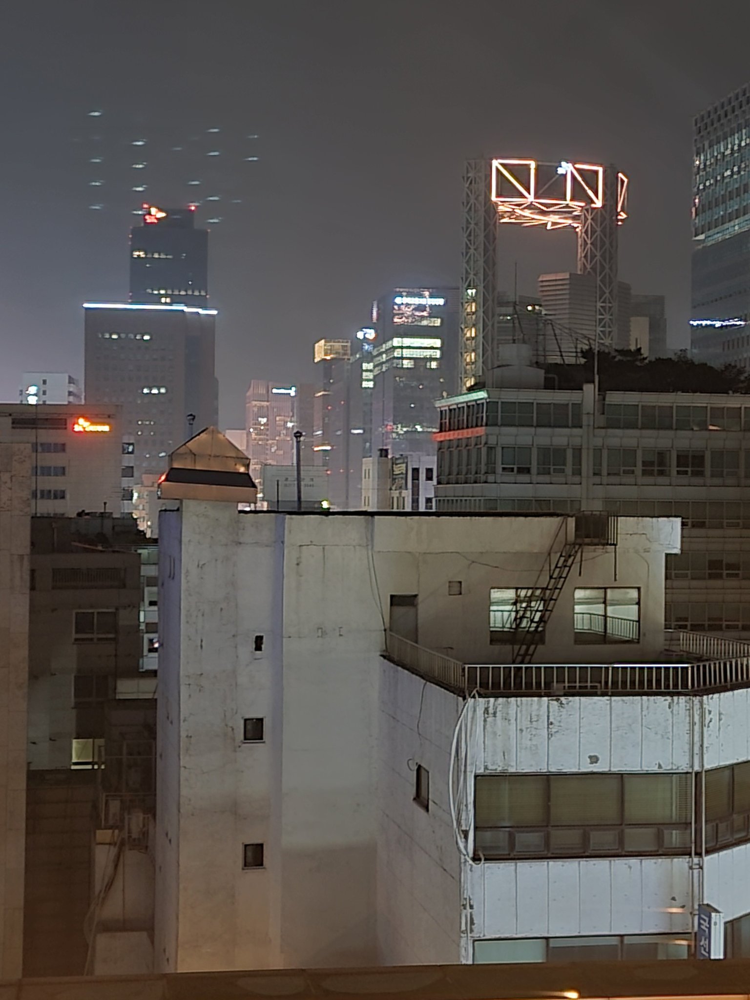 От снощи сме в Сеул и сме в един хотел-апартамент с гледка към кулата Jogngo, която сме виждали в някои сериали (светлите квадрати горе вдясно).