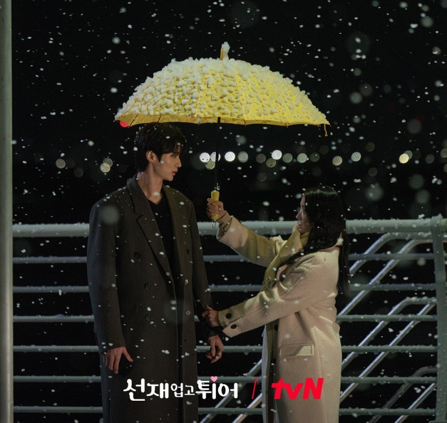 Първите две къщи са от Lovely Runner, там живееха Главните. А жълтият чадър е, защото се срещнаха няколко пъти под него и това е Чадърът на Съдбата: