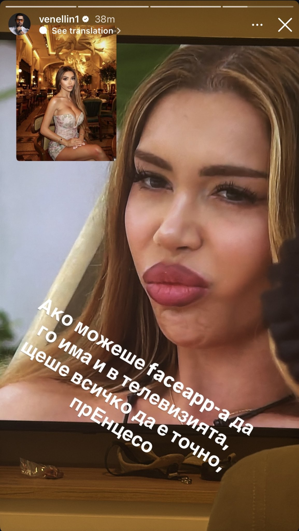 Тя след предаването явно си е сложила още филъри в бузите/скулите/брадичката. Като си качва сторита изглежда като нажилена от пчели. Ще я видим как изглежда като започне да ходи по подкасти (ако изобщо има смелост да се появи след този публичен линч)